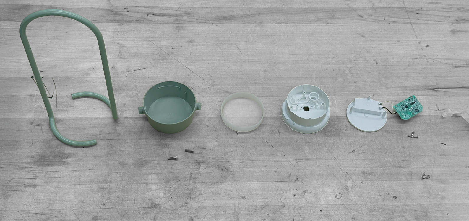 Deconstruction of a preexisting lamp from Ikea, taking note of the overall form, internal structure, and fit tolerances between components, as well as battery and button placement.