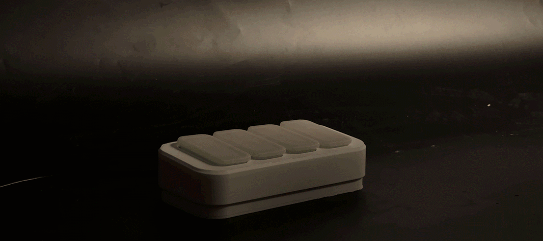 After the initial model building, adjustments were made to the shell, and 4 individual buttons were 3D modeled on Autodesk Fusion 360, that snap directly onto the existing breadboard buttons. This included very close attention to measurements, fit tolerances, and materials. Shown above is a short video clip of the prototype in action, with a randomized puzzle function.